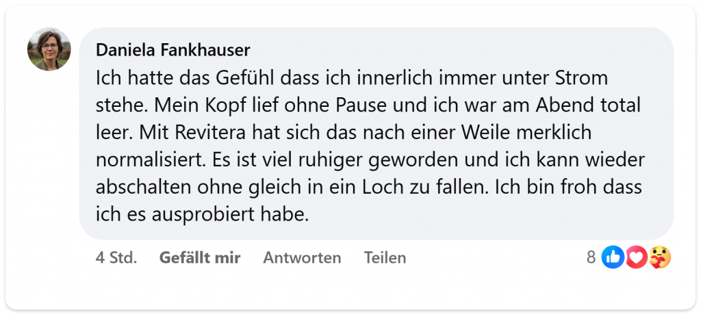 Ja, der Hersteller bietet eine 90 Tage Geldzurück-Garantie. Teste das Präparat deshalb gerne risikofrei – wenn Du von der Wirkung nicht zu 100% überzeugt bist, sende einfach eine E-Mail an hallo@revitera.ch