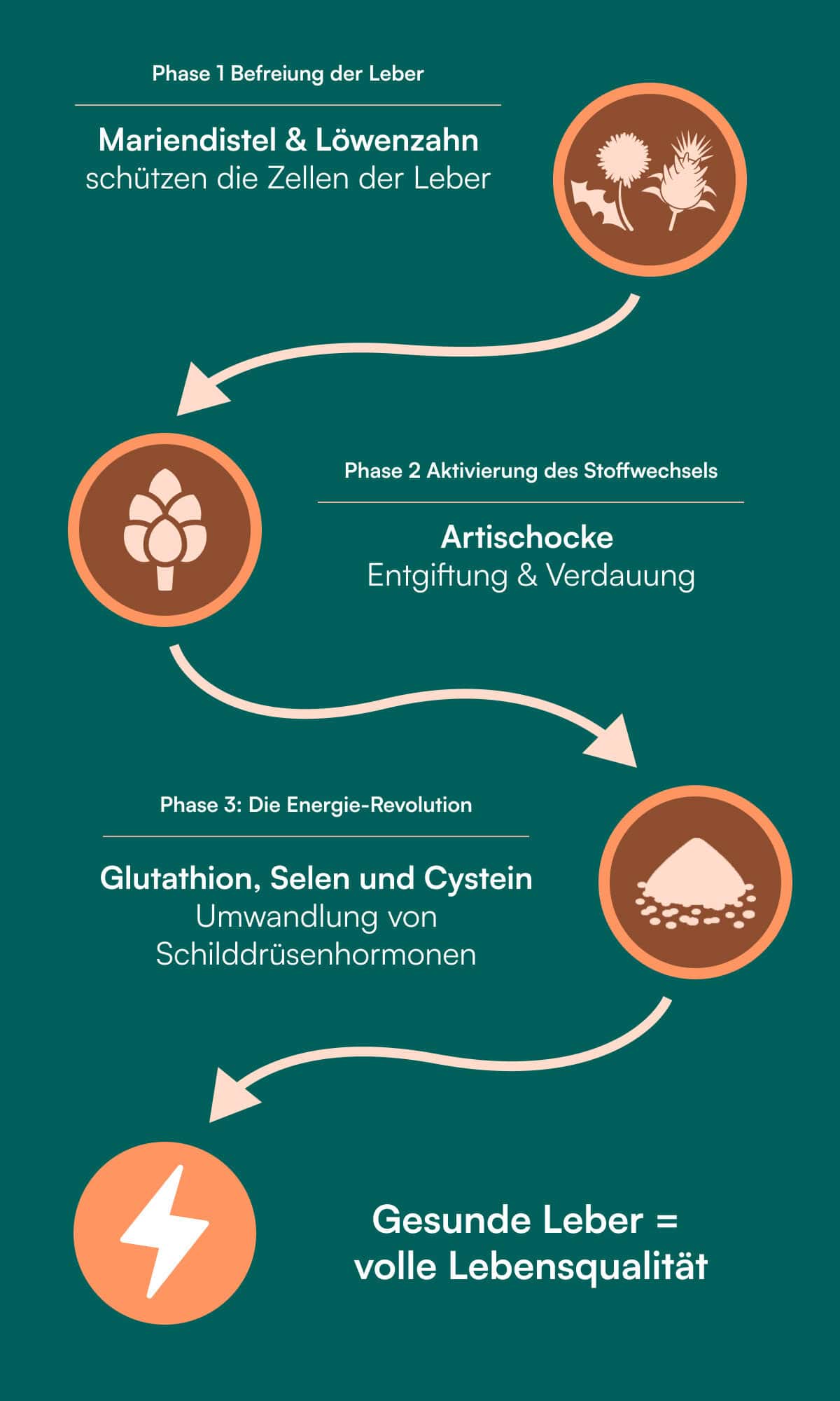 Essentielle Aminosäuren sind bei Hashimoto und einer Schilddrüsenunterfunktion sehr wichtig, greifen aber zu kurz. So haben beispielsweise Aminosäuren alleine keine Auswirkung auf die Leber. In Wandelkraft befinden sich ebenfalls essentielle und semi-essentielle Aminosäuren – nämlich gezielt jene, die für die Produktion von Glutathion (und damit für die Umwandlung der Schilddrüsenhormone) notwendig sind. Darüber hinaus besticht Wandelkraft aber auch noch mit hochwirksamen Inhaltsstoffen für die Lebergesundheit – nämlich Mariendistel, Artischocke, Löwenzahnwurzel und Cholin.