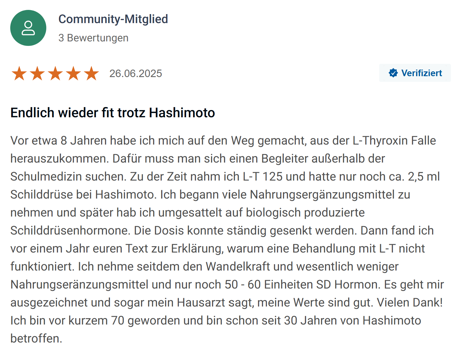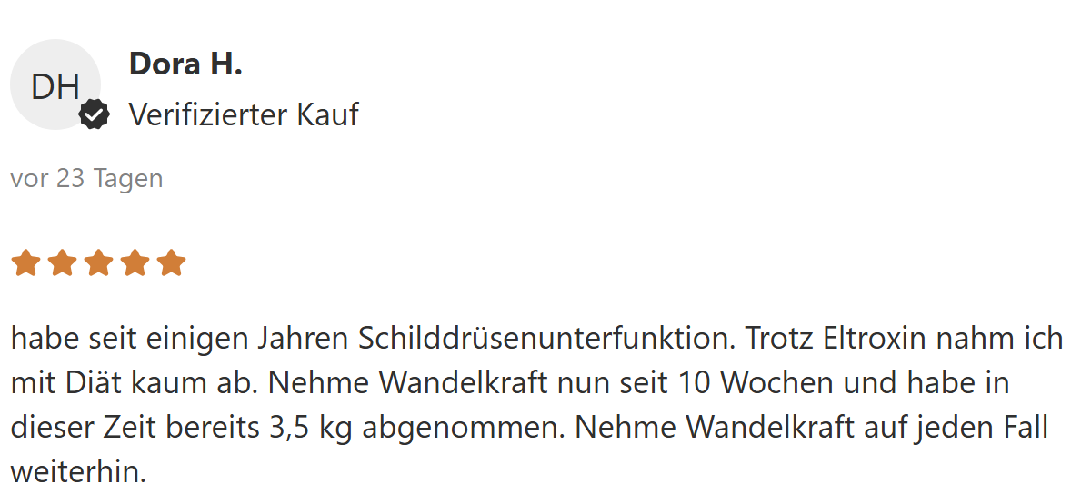 Meine Schilddrüsenwerte haben sich ebenfalls innerhalb von 3 Monaten deutlich verbessert.