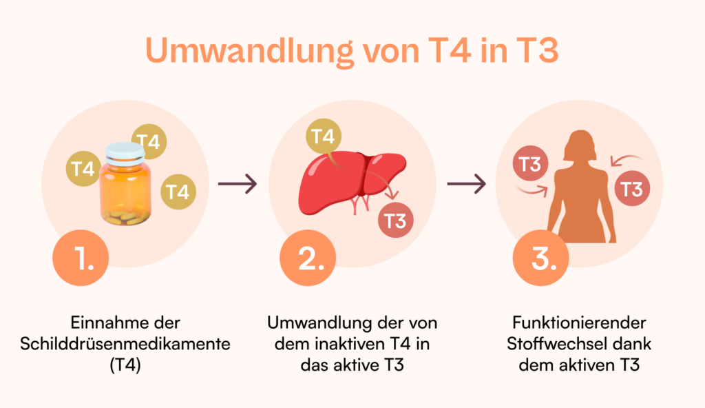 T4 wird in T3 umgewandelt, dein Stoffwechsel kommt in Schwung.