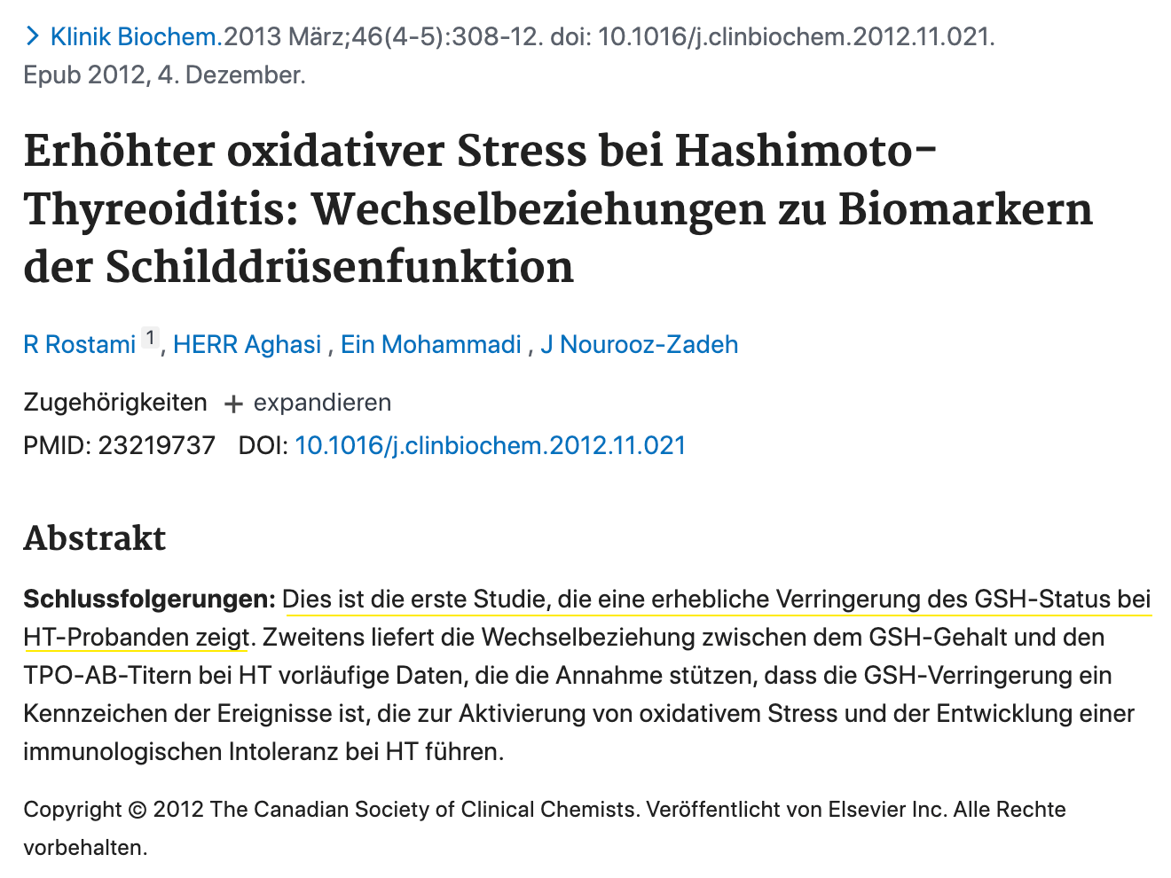 Und in der Tat zeigen Studien, dass beispielsweise Hashimoto-Betroffene weniger als halb so viel Glutathion im Serum (GSH) aufweisen als gesunde Vergleichspersonen (4).