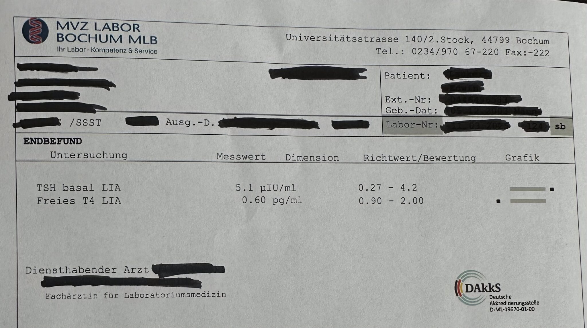 Bei mir lag der TSH-Wert jedenfalls bei 5,1!